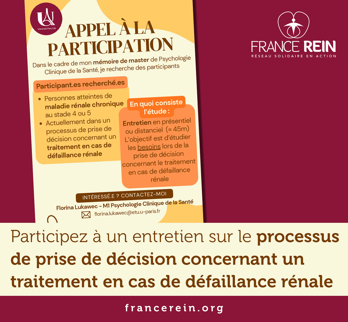 Pour participer à cet entretien, contactez Florina Lukawec florina.lukawec@etu.u-paris.fr