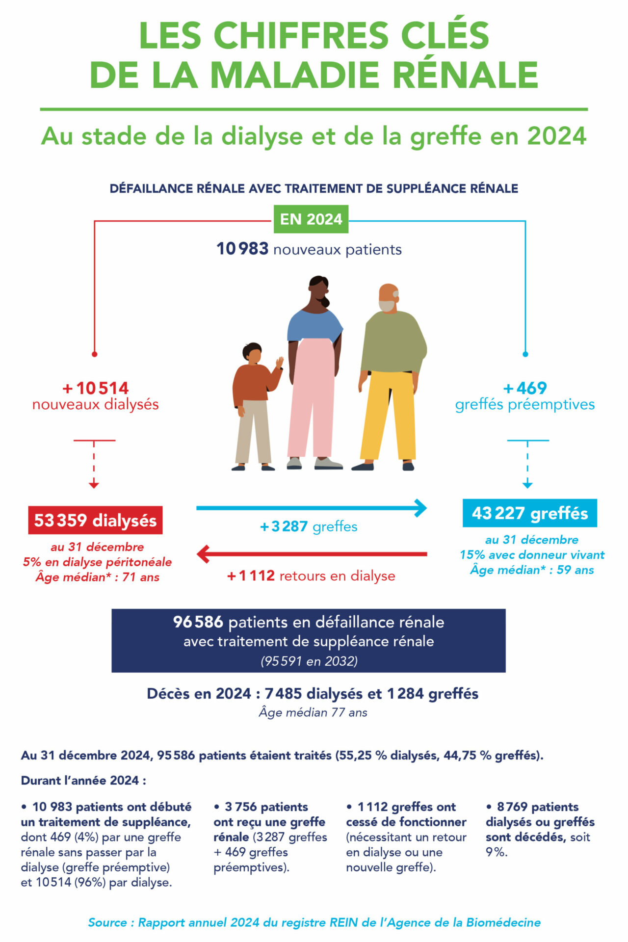 À l’occasion de la Journée mondiale du rein, l’Agence de la biomédecine publie les données 2024 du registre REIN (Réseau épidémiologie et information en néphrologie).