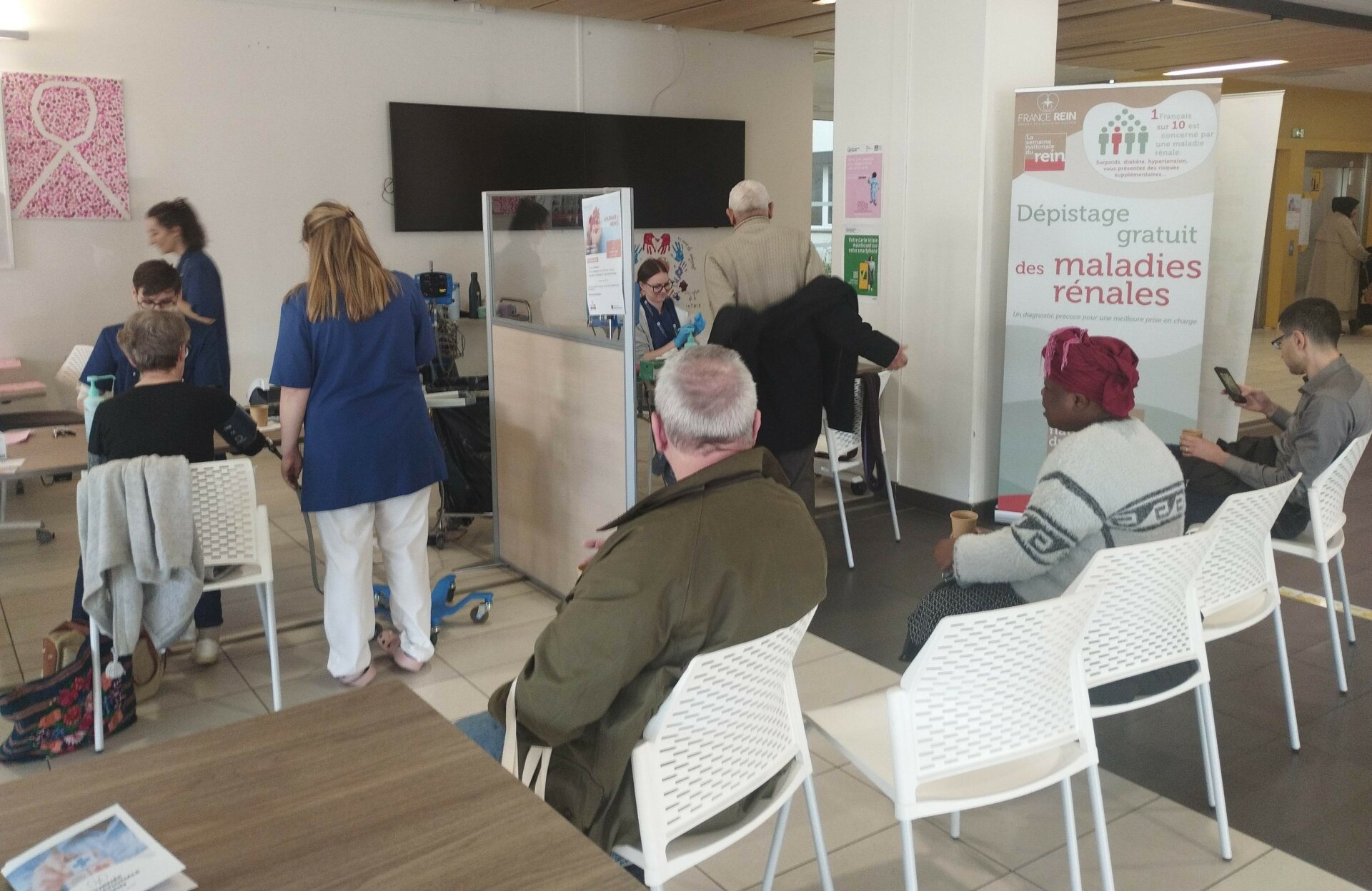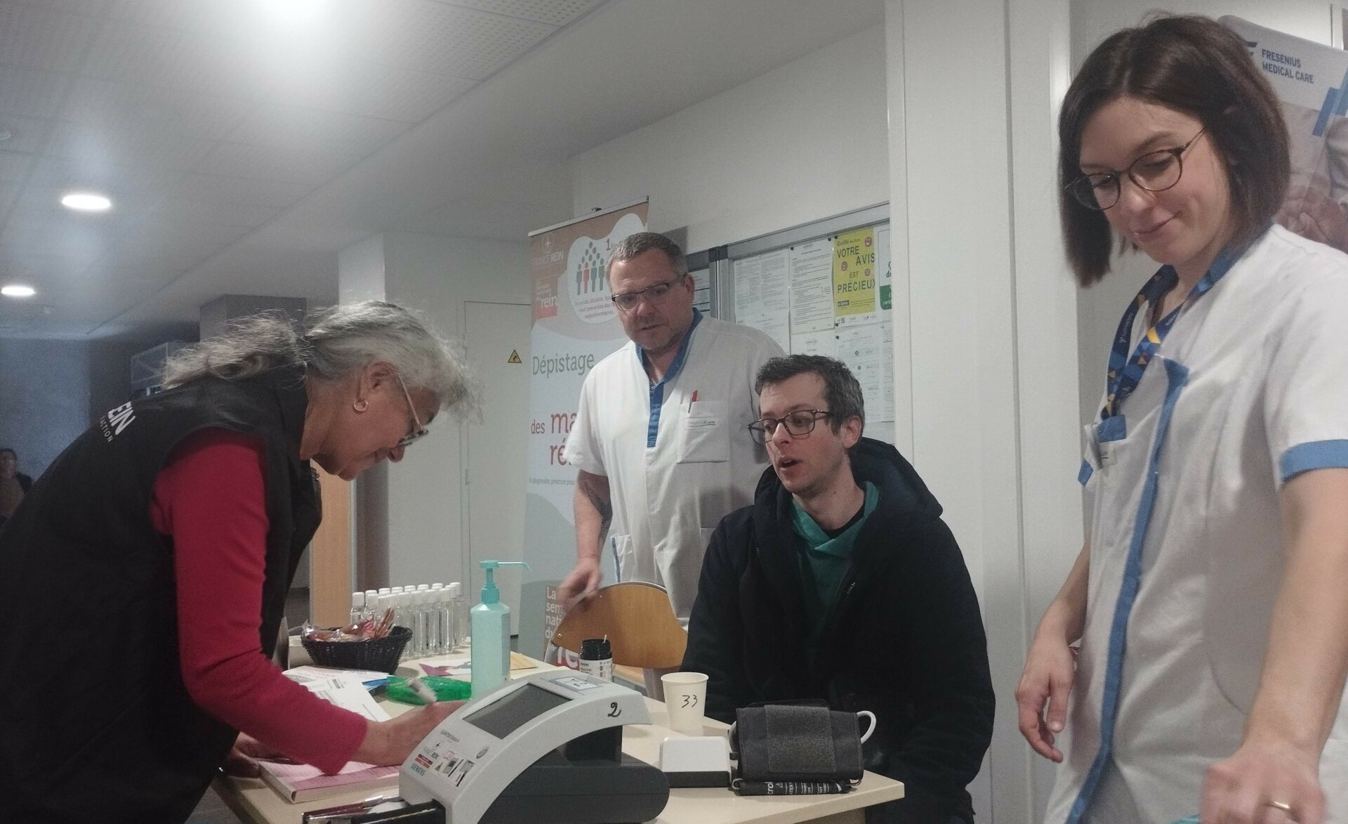 178 personnes ont été accueillies et ont passé l’examen du dépistage, dans une ambiance très conviviale. Les équipes étaient accompagnées par 2 élèves infirmières de l’Institut de formation en soins infirmiers. 5 personnes ont été orientées vers un néphrologue, au vu des résultats de leur test.