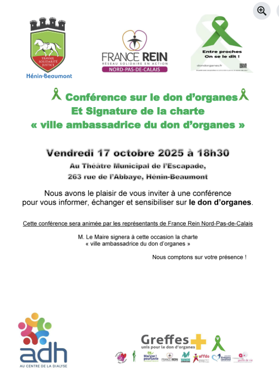 Conférence à Hénin-Beaumont sur le Don d'organes, le vendredi 17 octobre 2026